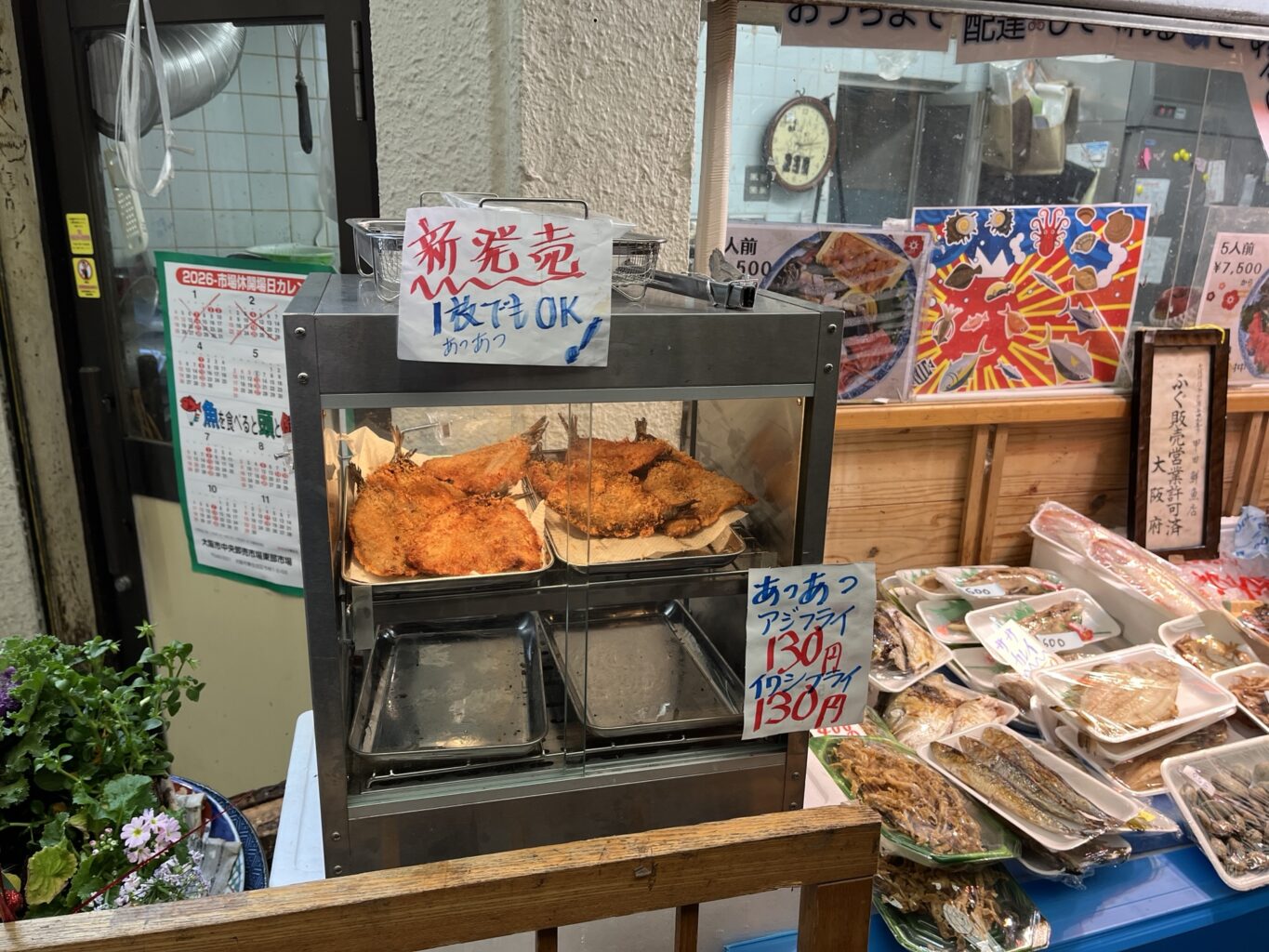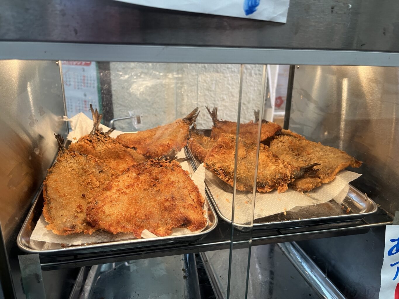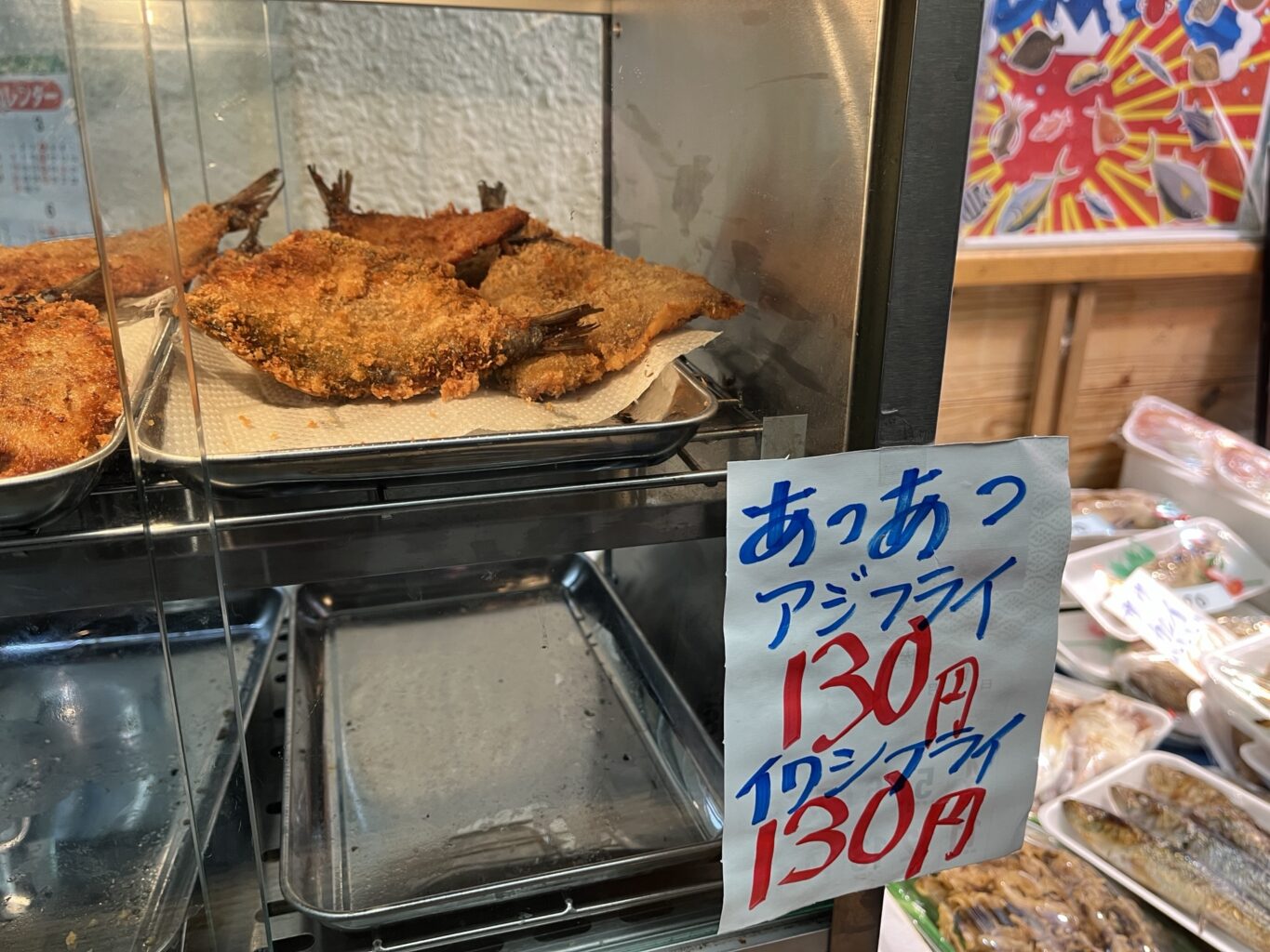 アジフライ、イワシフライが130円 他にもフライが色々並びます。