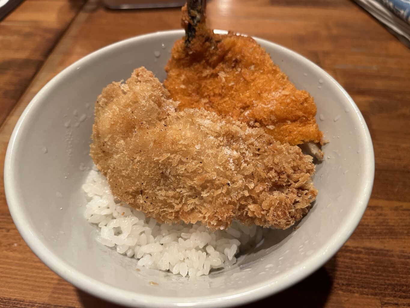 2本をくっつけて揚げてるエビフライ