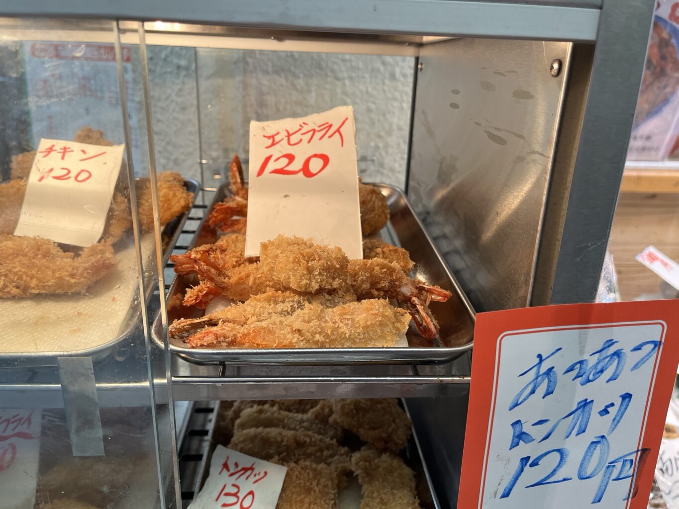 一番大きなチキンカツは120円!2個食べたらお腹ふくれます(笑)