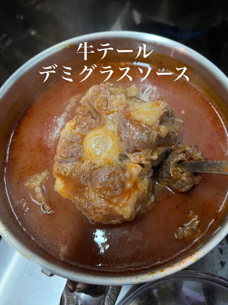 こちらのデミステーキのデミグラスソースは、トマトと牛テールを数時間、数日にわけて煮込んで手間暇かけて作ってます。
