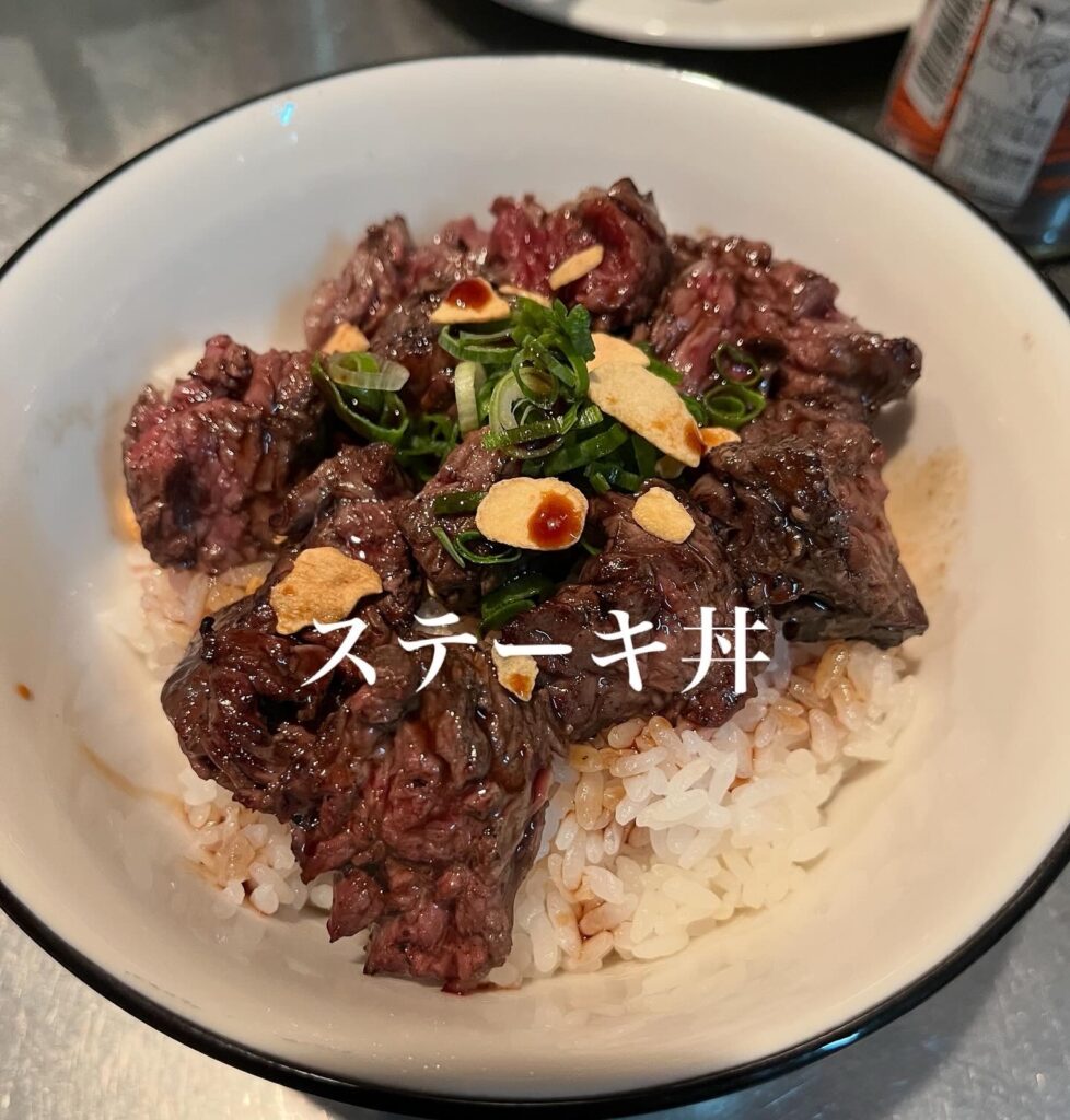 ランチ限定のメニュー ステーキ丼 自家製タレにこだわってます。一気に肉とご飯をかき込みたい方は是非!