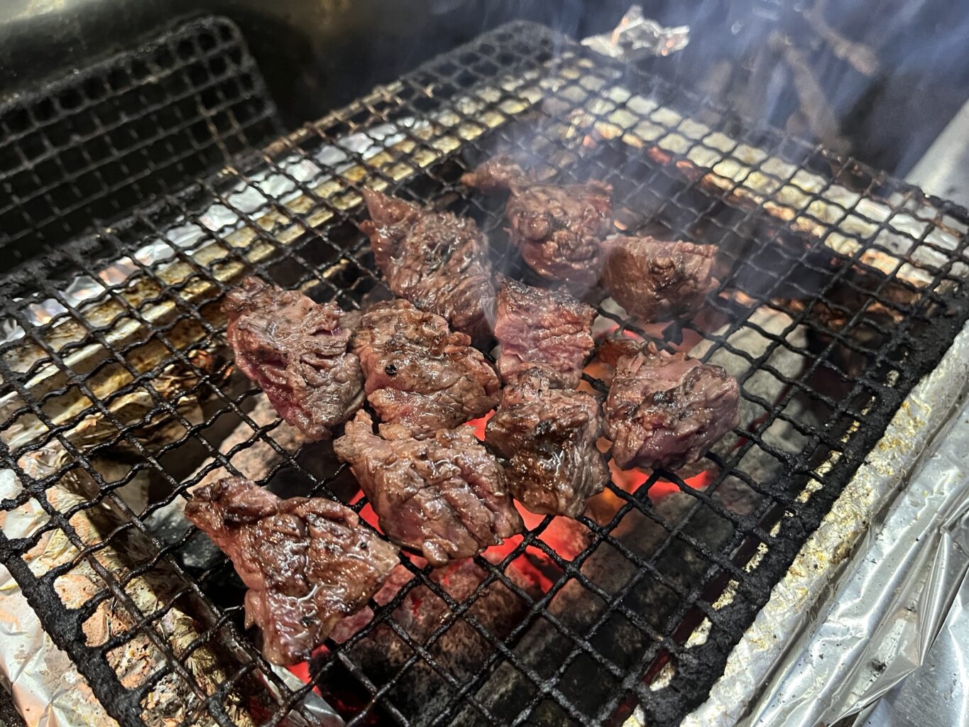 備長炭と薪を使い高火力を空気の出し入れで調整しながらステーキやホルモンなどを焼いていきます。高度な調理技術のため長年の経験と修行がなければできません。チェーン店や大型店では真似できない焼き加減と香ばしい香りをお楽しみいただけます。