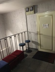 4階へ着きました。やっぱりスナックやん!廊下に椅子出してるし、只今外出中の貼り紙はってあるし。