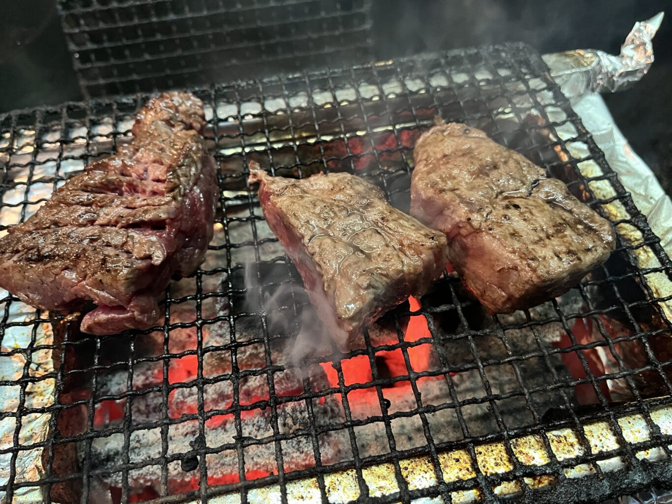 炭と薪で一気に香ばしく焼き上げます。