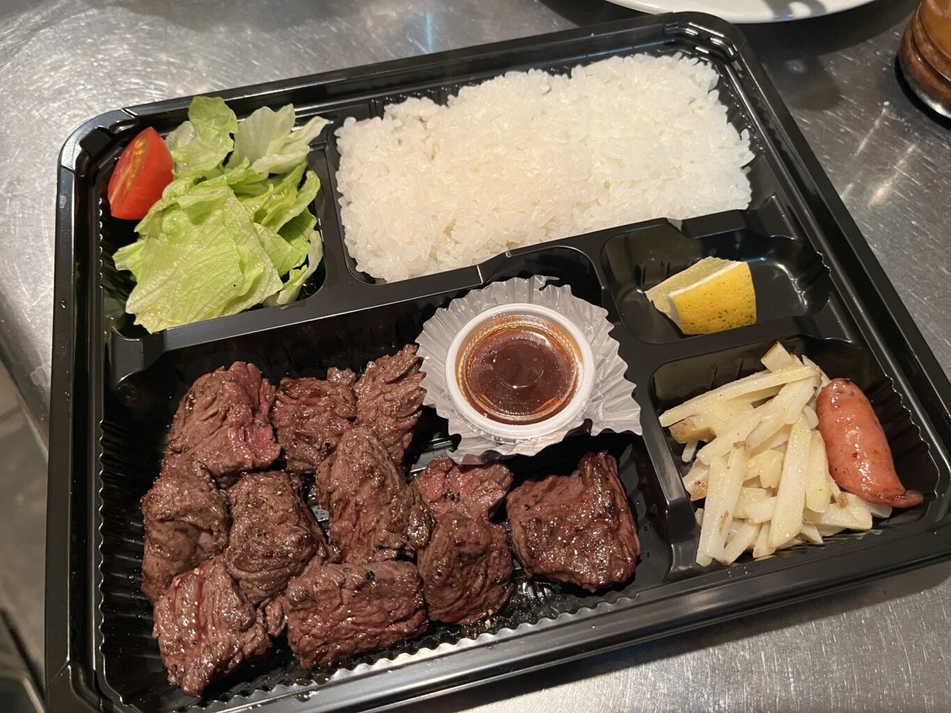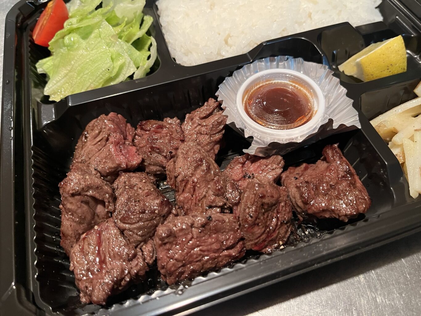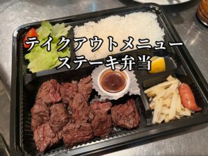 こちらは、炭焼きステーキ弁当 テイクアウトメニューはディナータイムのみやってます。
