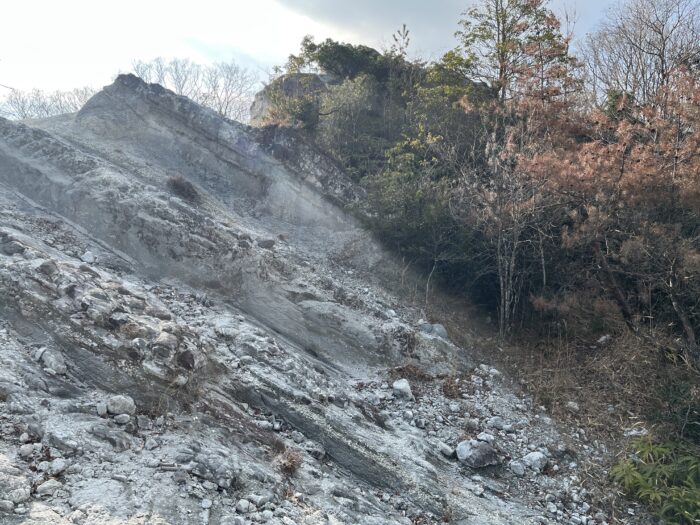異様な光景です。脇道には登山道があり、体力に不安がある方はそこから上がっていけるようになっていますのでご安心を。
