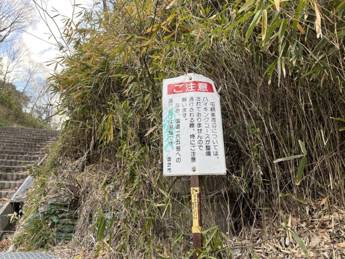 看板を見つけたら階段を上がっていきます。駐車場からすぐです。