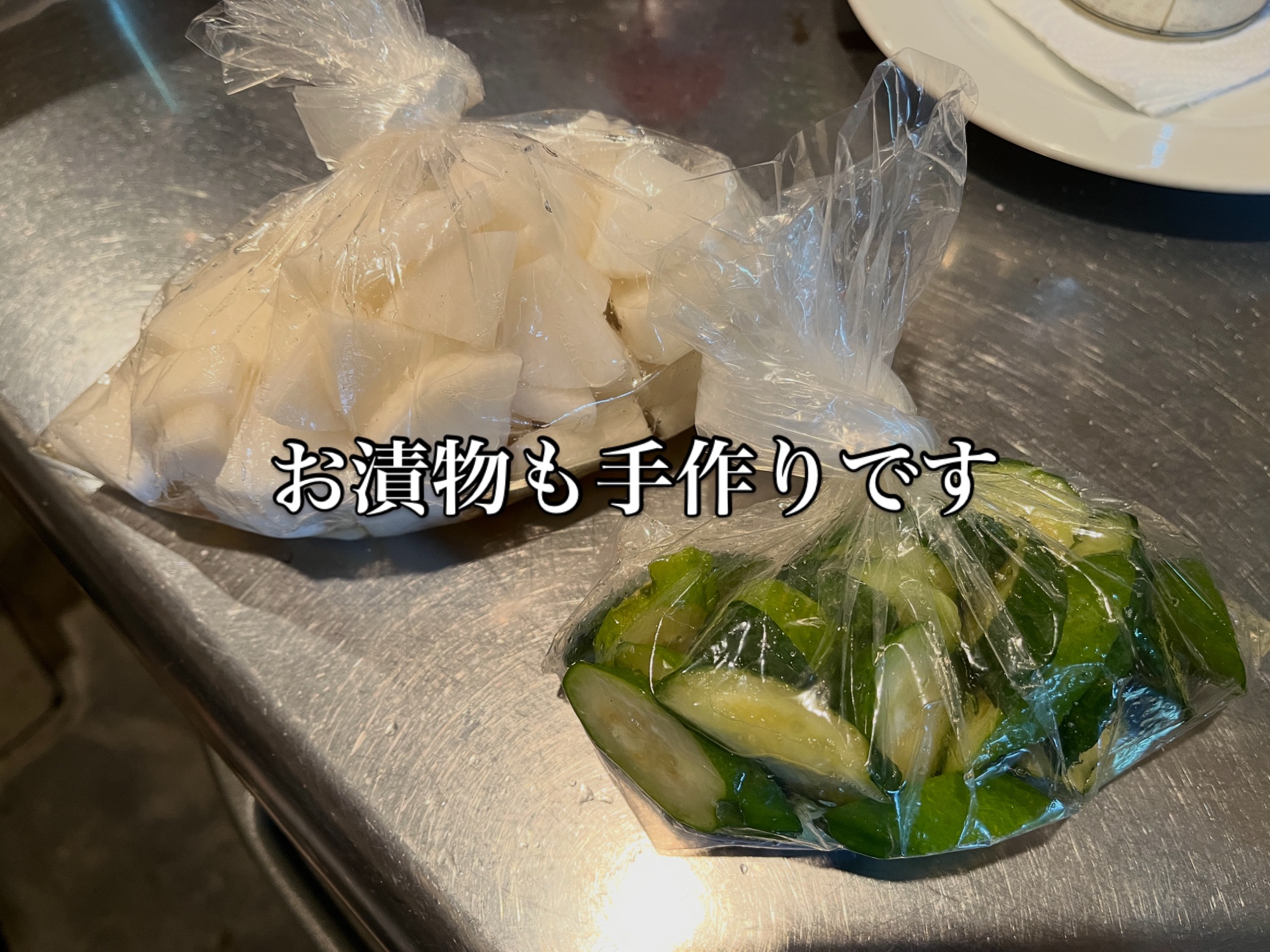 定食に付いてくる大根と胡瓜の お漬物も手作りです。