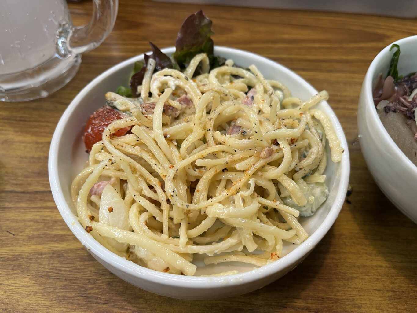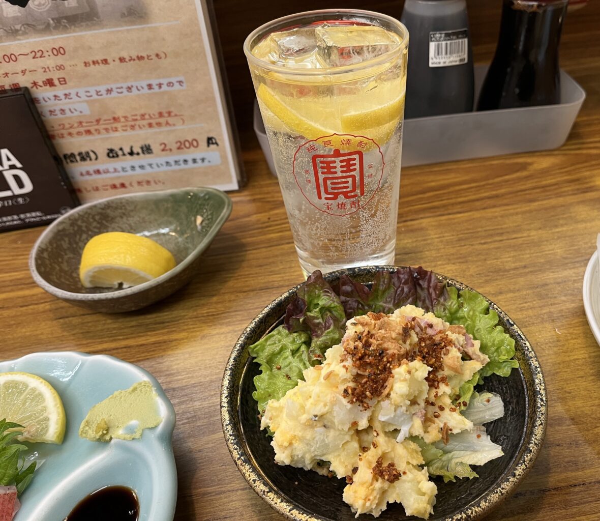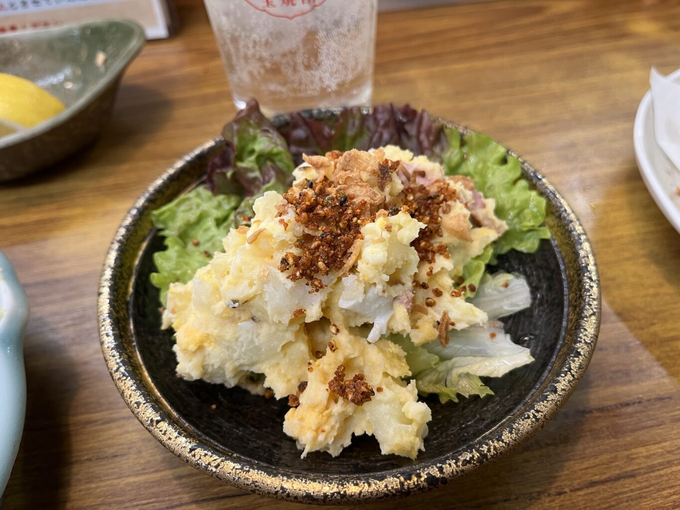 ちゃんと手作りのポテトサラダ そのままでもおいしいのですが、お客さんがお土産でくれたという辣油山椒をかけていただきました。酒がススムぜ〜