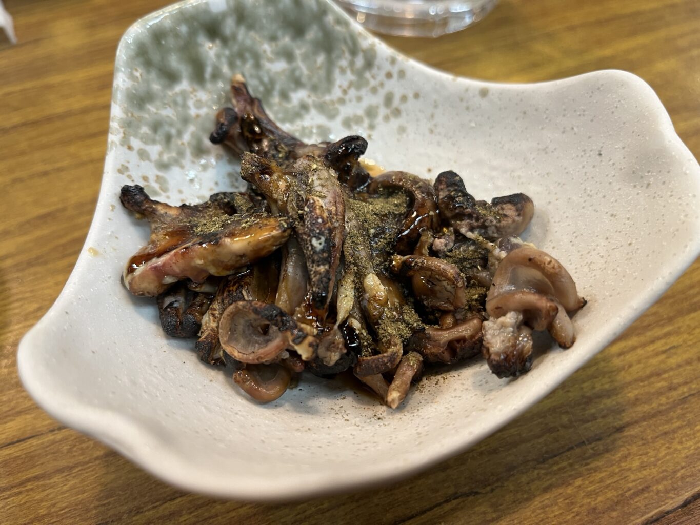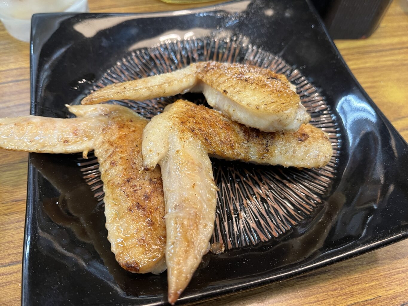 焼き鳥メニューは、焼き鳥、手羽先、肝、砂ずりの4種類があります。塩かタレか選べます。