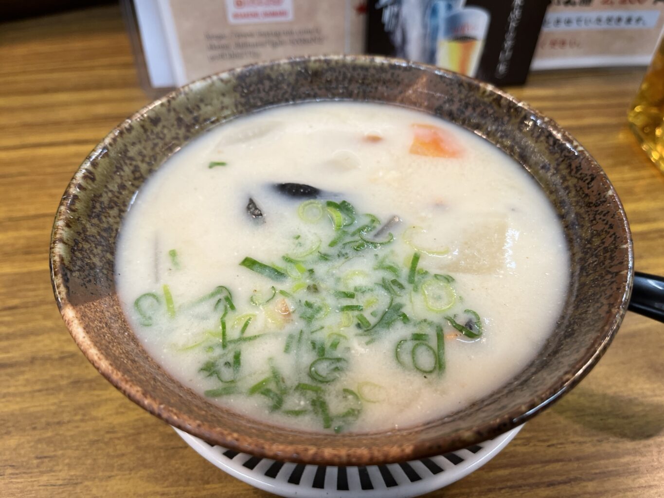 あればラッキー、具沢山の粕汁、鮭のアラが入っていて良い出汁が出ています。