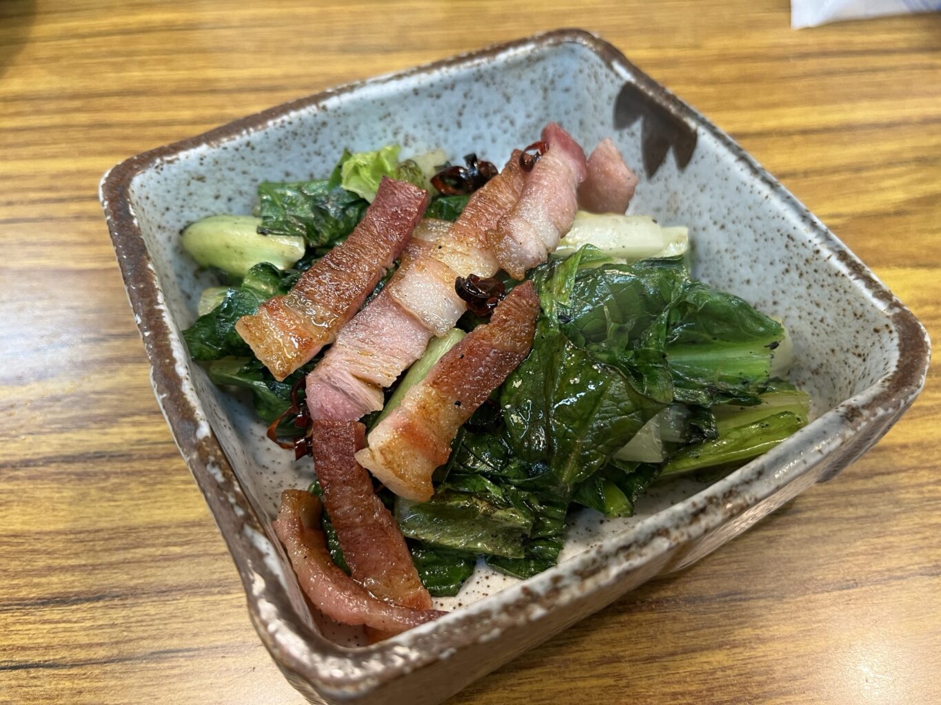 3月からホテルで働いていた息子さんもお店に加わり鉄板焼きメニューと創作メニューが増えてくると思います。こちらは息子さんが考案したメニュー ロメインレタスとベーコン炒め
