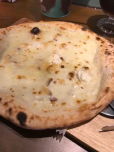 夜はワイン飲みながら2枚くらい軽くたべれます。こちらのメニューは珍しい揚げピザ マルゲリータ550円です。サクサク揚げ立ての生地からたっぷりのチーズとトマトソースが、、、オススメです!めちゃくちゃ熱いので注意!(笑)