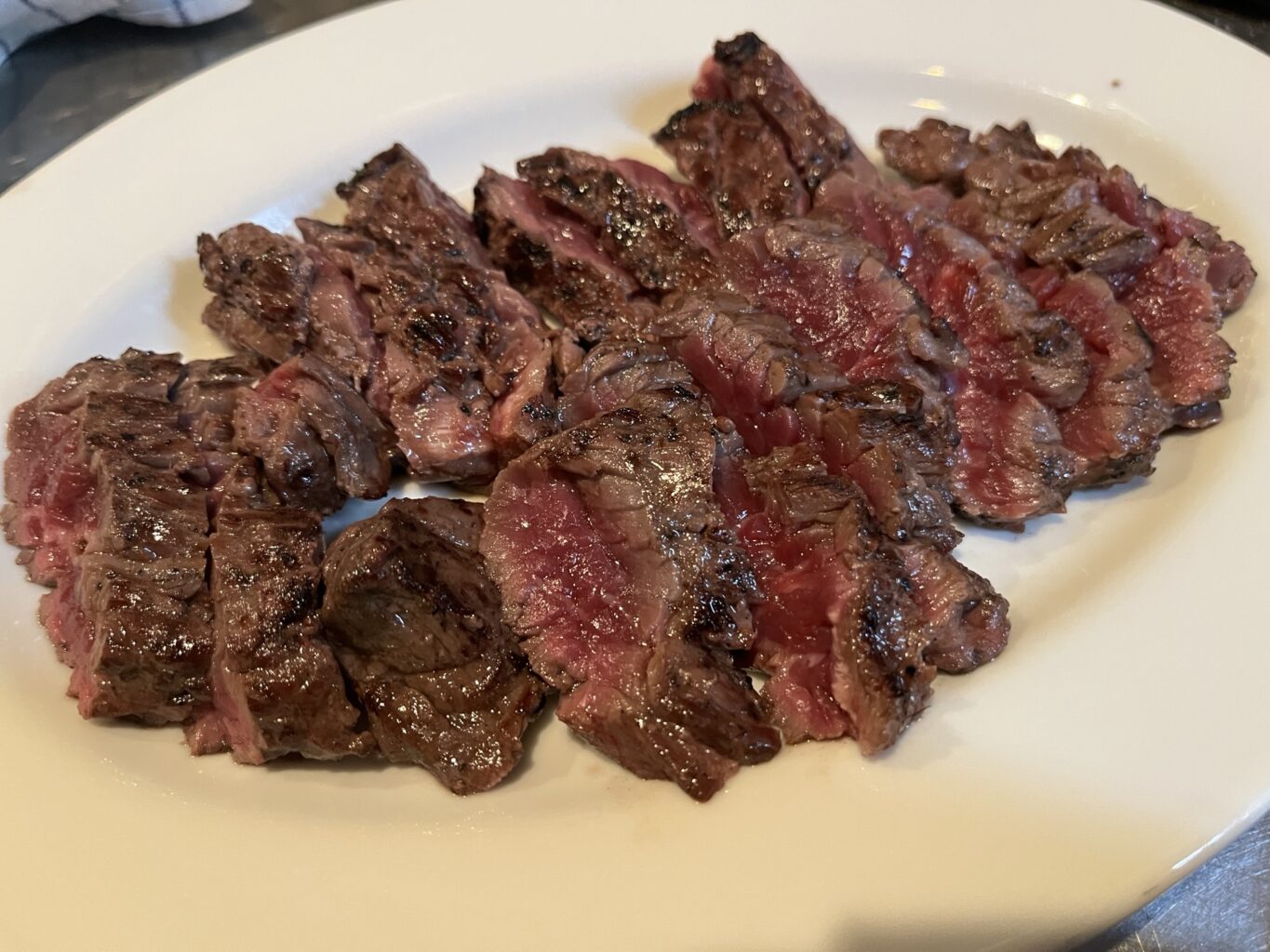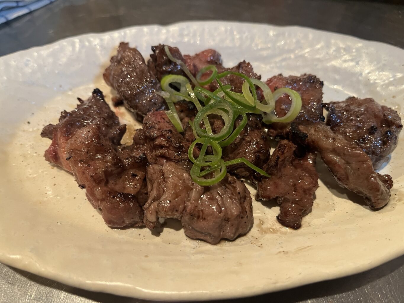 牛すじ焼きは、ステーキとして出すには少しかたい場所を集めてすじ焼きにします。こちらも強火で一気に焼き上げます。すじ焼きは数人前くらいしかないのであればラッキーなメニューです。是非食べてみてください!
